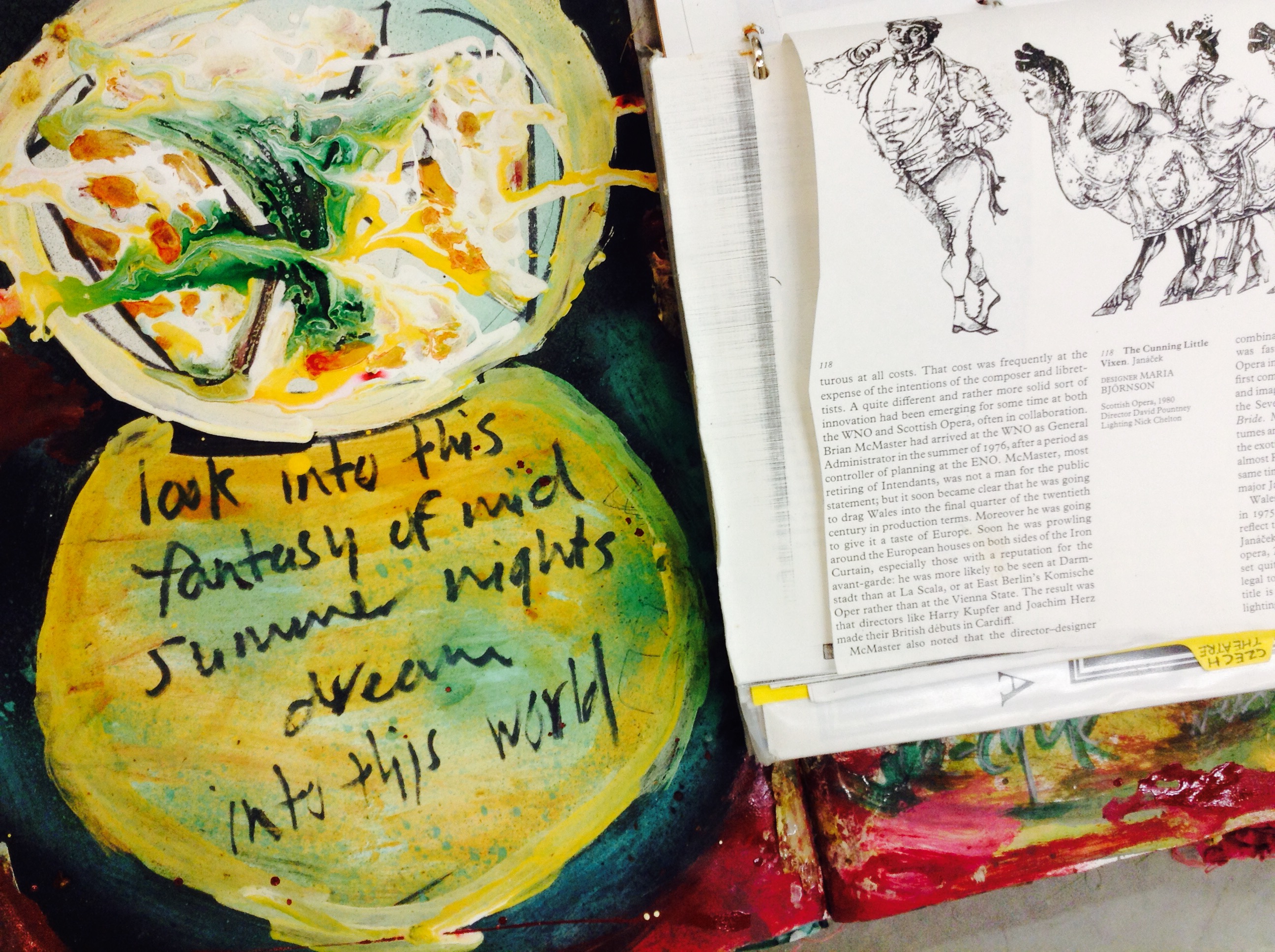 After an arts foundation, I studied theatre design. The plays, operas and musicals that I had to design still stick in my mind. The Cunning Little Vixen was a woodland and political study. I went to Czechoslovakia just after it was ‘free’ and stayed with art students who battled acid rain. The forest was my stage for three months. Now I realise I loved it. Before the Cunning Little Vixen, I studied the just as dark Into the Woods. Since then I’ve clambered at woods via train windows, visited them via stories, and swum in the direct experience of them when travelling near rivers, such as swimming in a Redwood forest in California.